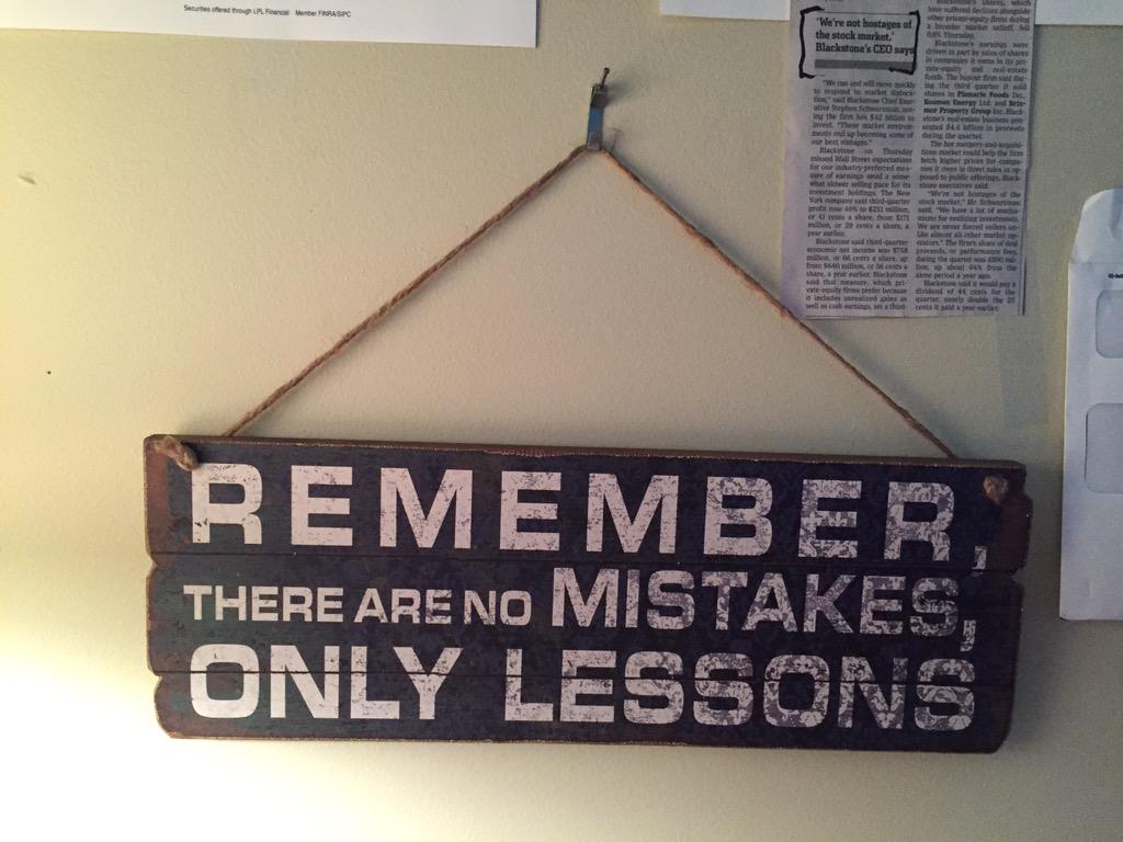 We have a sign hanging in our office that says: “There Are No Mistakes…Only Lessons”