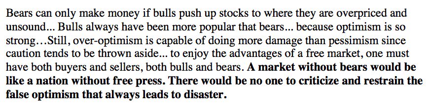 “A market without bears would be like a nation without free press” -Bernard Baruch